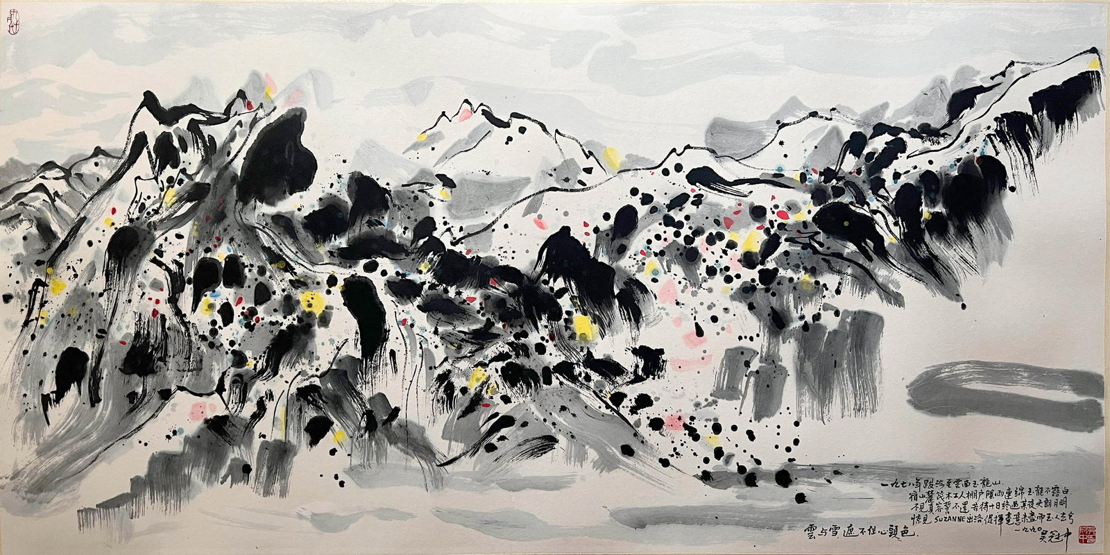 A LANDSCAPE PAINTING ON PAPER BY WU GUANZHONG.吳冠中