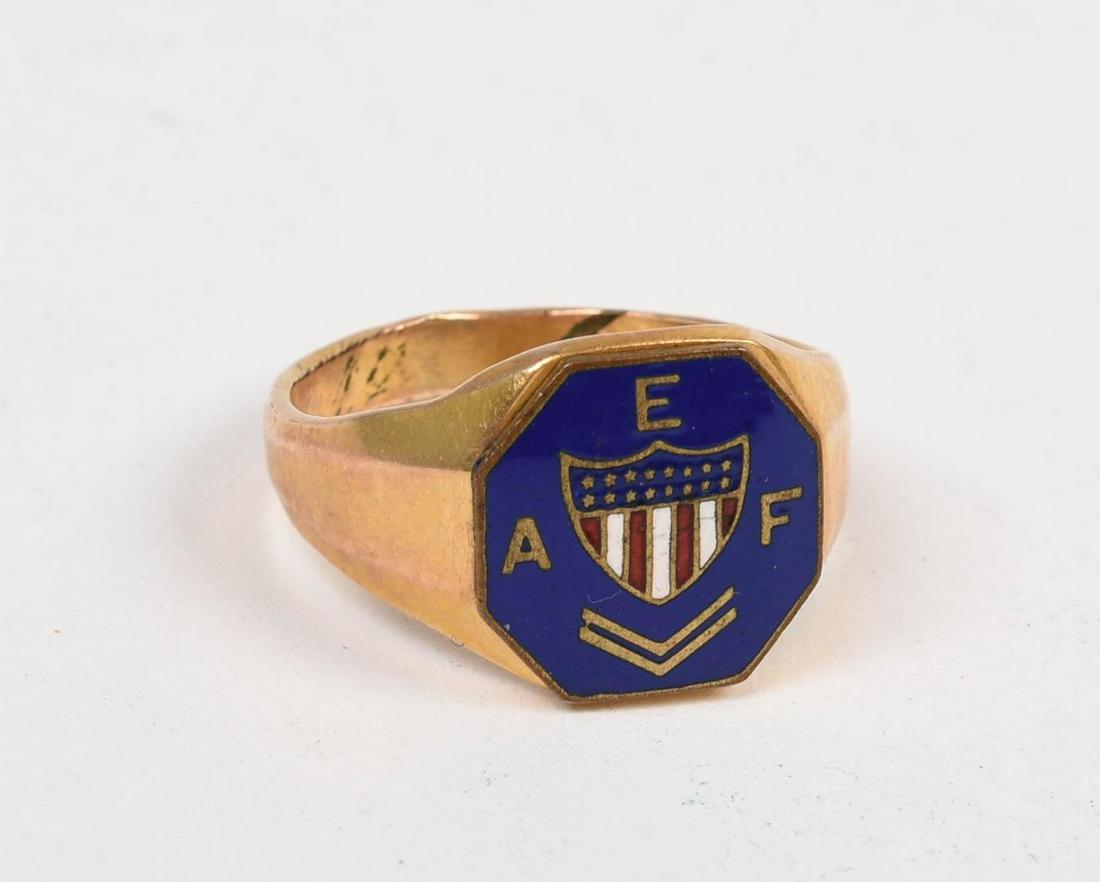SoldGOLD SIGNET Ring, USA AEF DOUGHBOY ENAMELLEDOriginal Rare WWI USA AEF DOUGHBOY ENAMELLED GOLD SIGNET Ring. Stamped inside: 12 KT. Gold Shell, full enamel, size 9. For your convenience we will ship your item for a reasonable price - shipping cosSee Sold Price