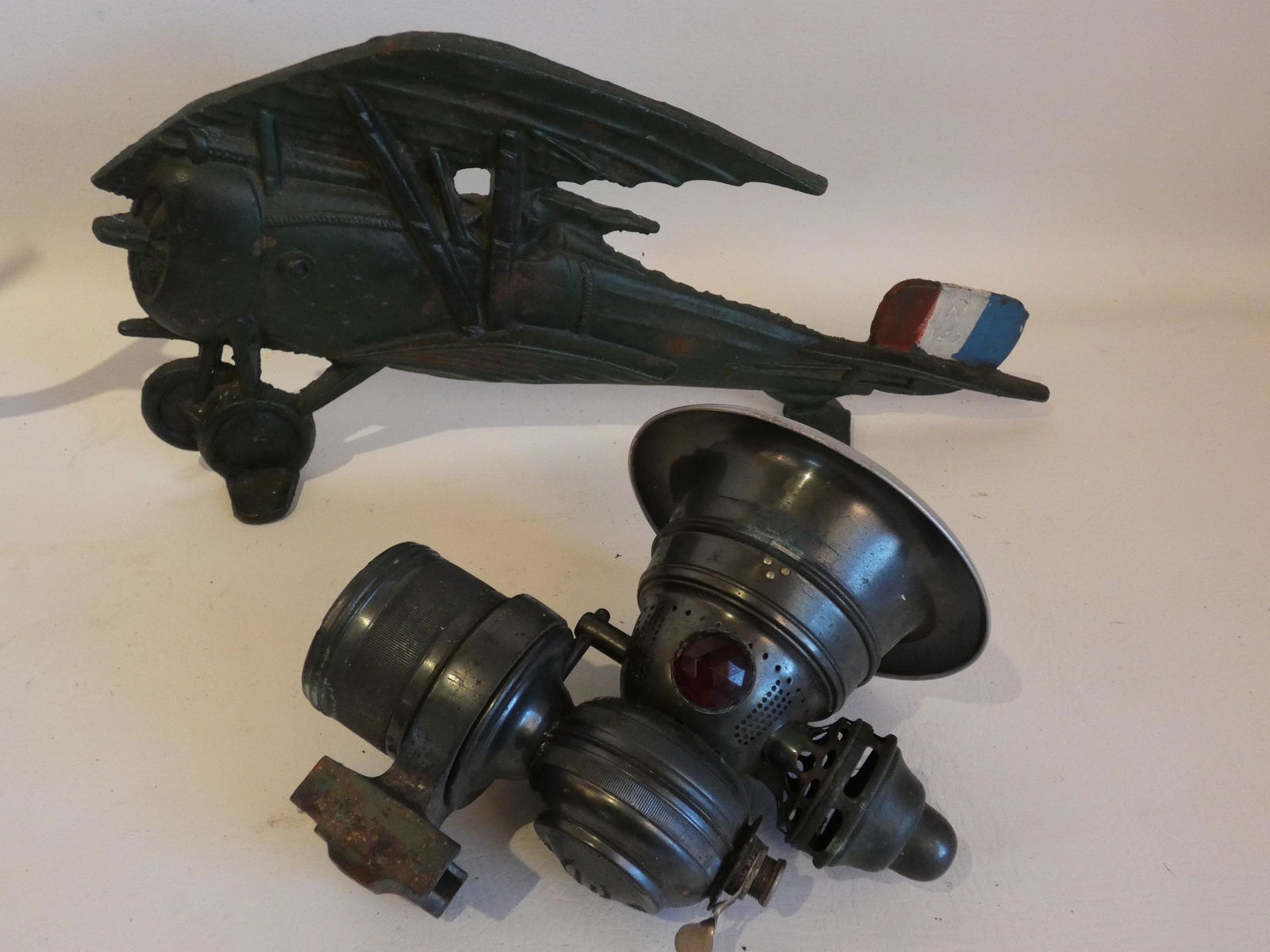 WWI PLANE DOORSTOP& BICYCLE LANTERN