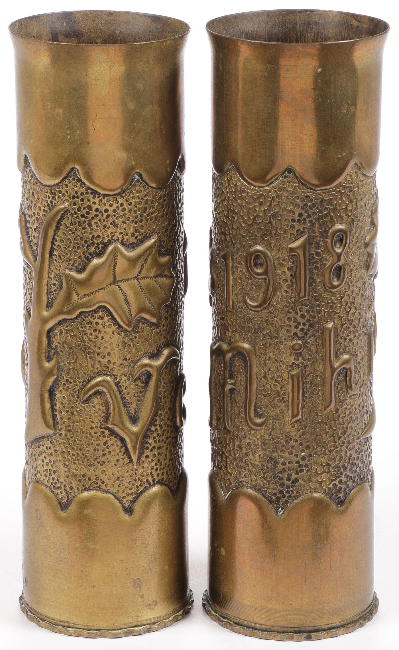 (6) FRENCH WWI-ERA TRENCH ART ARTILLERY SHELL VASES1 day Left(6) FRENCH WWI-ERA TRENCH ART ARTILLERY SHELL VASES1 day Left2- ALLEN TYPE PEPPERBOX PERCUSSION PISTOLS1 day Left(8) FRENCH WWI-ERA TRENCH ART ARTILLERY SHELL VASES1 day LeftANTIQUE WWI ARTILLERY SHELL TRENCH ART VASES (3)Mar 08, 2026Pair of Vintage Brass Standard LampsEST. WWII ARTILLARY CAST SHELL TRENCH ART LAMPMar 07, 20262- CIVIL WAR RIFLES, WHITNEY & SPRINGFIELD1 day Left2 Antiq Batty & Sons Copper&Brass Powder FlasksMar 07, 2026[WORLD WAR I] Trench Art Artillery Shell VaseMar 05, 2026WWII Carved Mortar Shells: Thistle & Cross of Lorraine3 hrs LeftPair Of Art Deco Tubular Mica Shade Funeral LampsFeb 28, 2026Pair of George III Brass CandlesticksMar 13, 2026WWI French 75mm Artillery Shell Casing Trench Art Vase with Religious MotifsMar 07, 20262 English Brass Telescopes, c. 1880Mar 14, 2026A pair of exquisite gold, silver and copper feather cupsMar 07, 2026