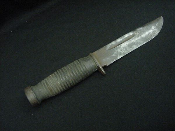 WWII USMC ROBESON SHUREDGE KARBAR TYPE FIGHTING KNIFE WITH RED SPACER AND LEATHER SHEATHPeddlers Auction$200(6 bids)5 days Left