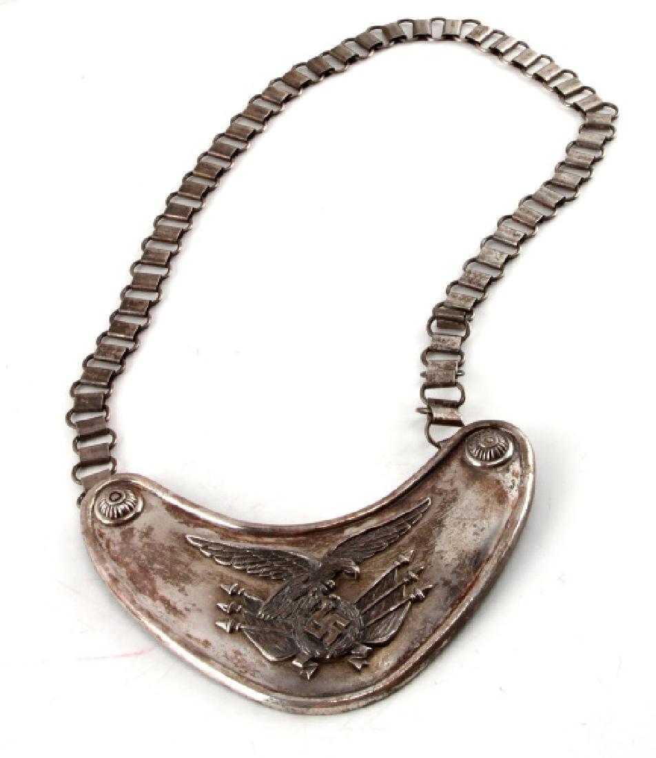 WWII GERMAN SWASTIKA EAGLE GORGET WITH CHAIN