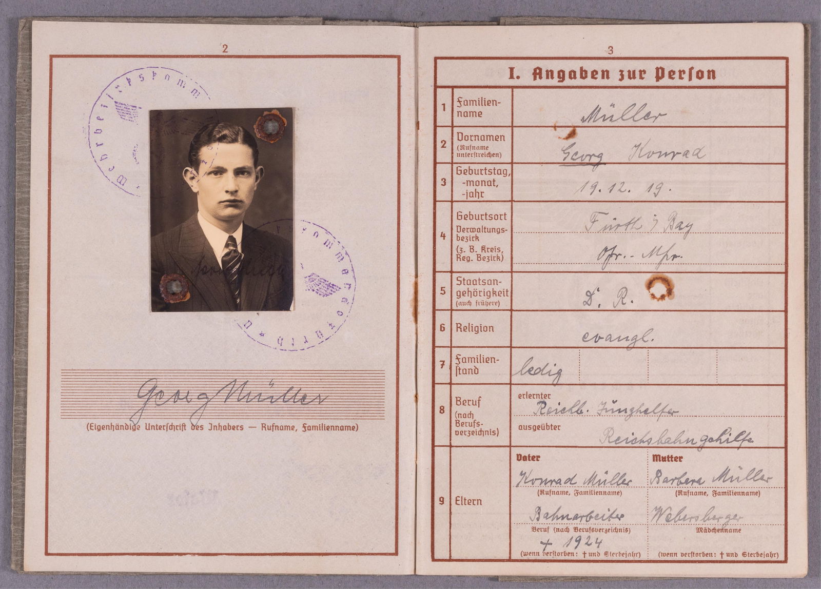 WWII GERMAN WEHRPASS [EASTERN FRONT FIGHTER]