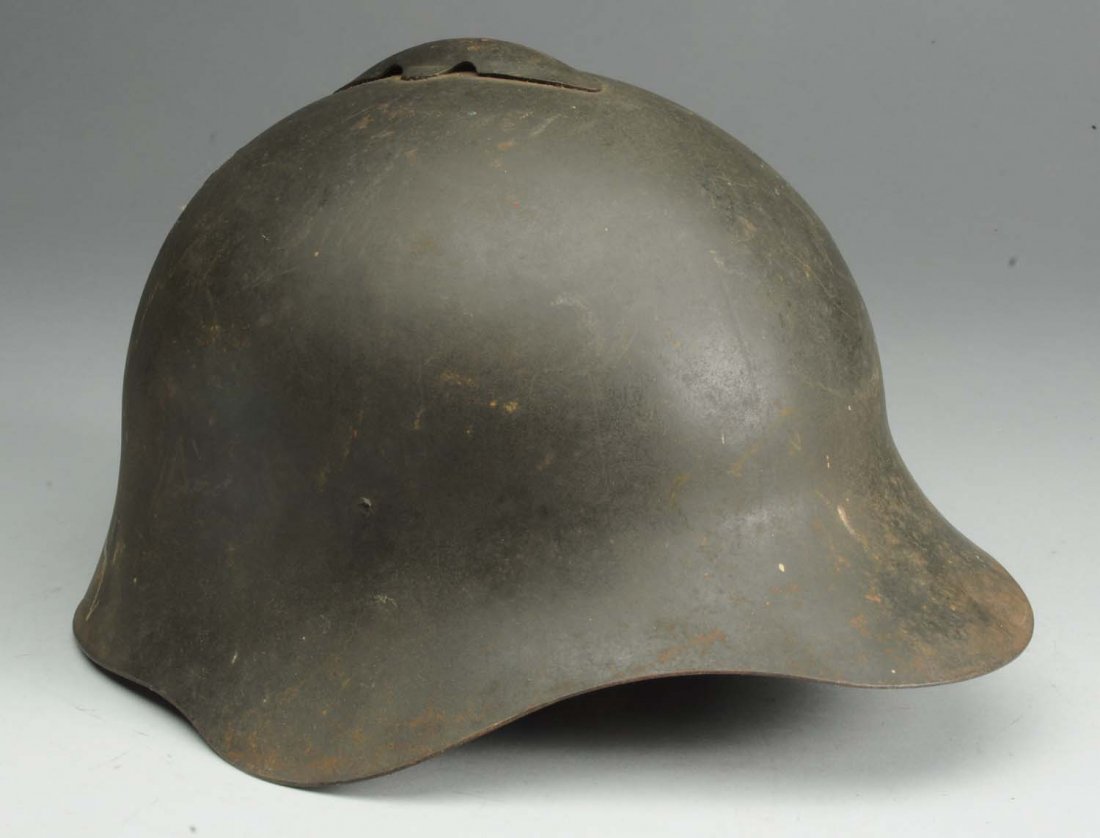 SoldWWII ERA RUSSIAN SOVIET MILITARY HELMET NO INSERTA WWII era Russian Soviet military steel helmet without insert liner. A pair of metal loops on the sides for a strap. WWII Era Military Helmets, Caps, Uniform For Collectors. Dimensions: H 7 1/8 in, WSee Sold Price