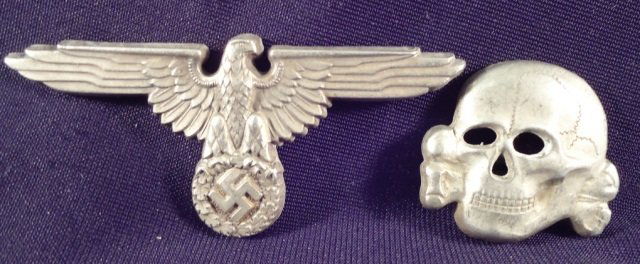 WWII Waffen SS Officers Visor Cap Eagle/Skull Set