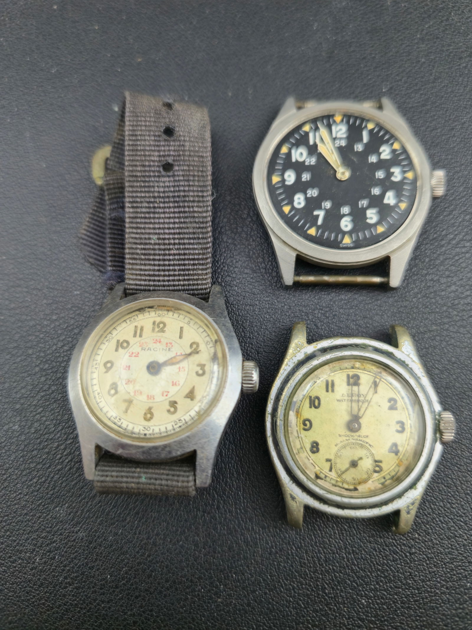 WWII–1967 Military Watch Lot: Gallet Racine 32mm, Leroy/Gallet 31mm, Benrus MIL-W-3818B 34mm