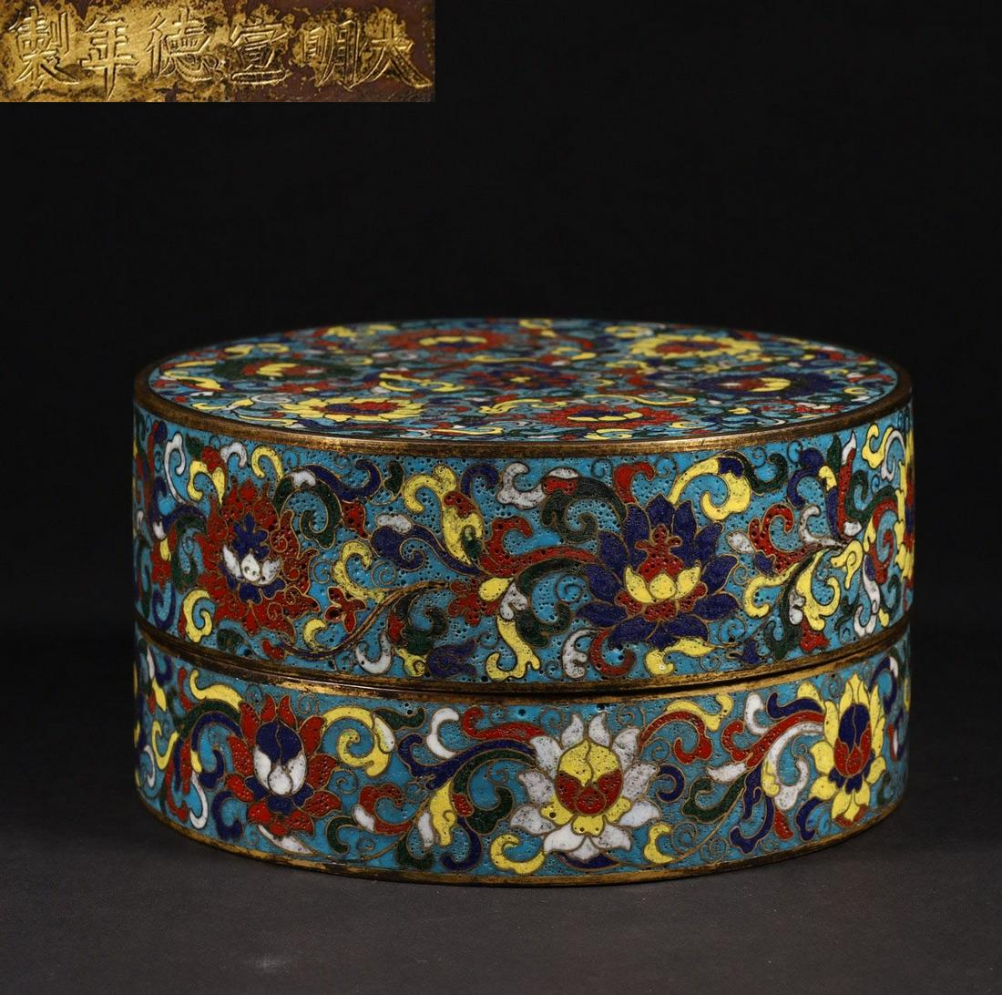 XUANDE MARK CLOISONNE LOTUS PATTERN BOX