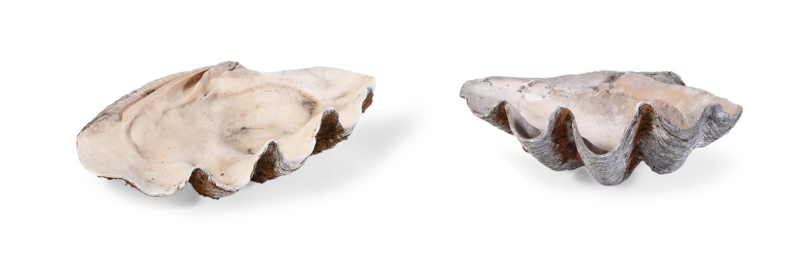 Y TWO GIANT CLAM SHELLS (TRIDACNA GIGAS)