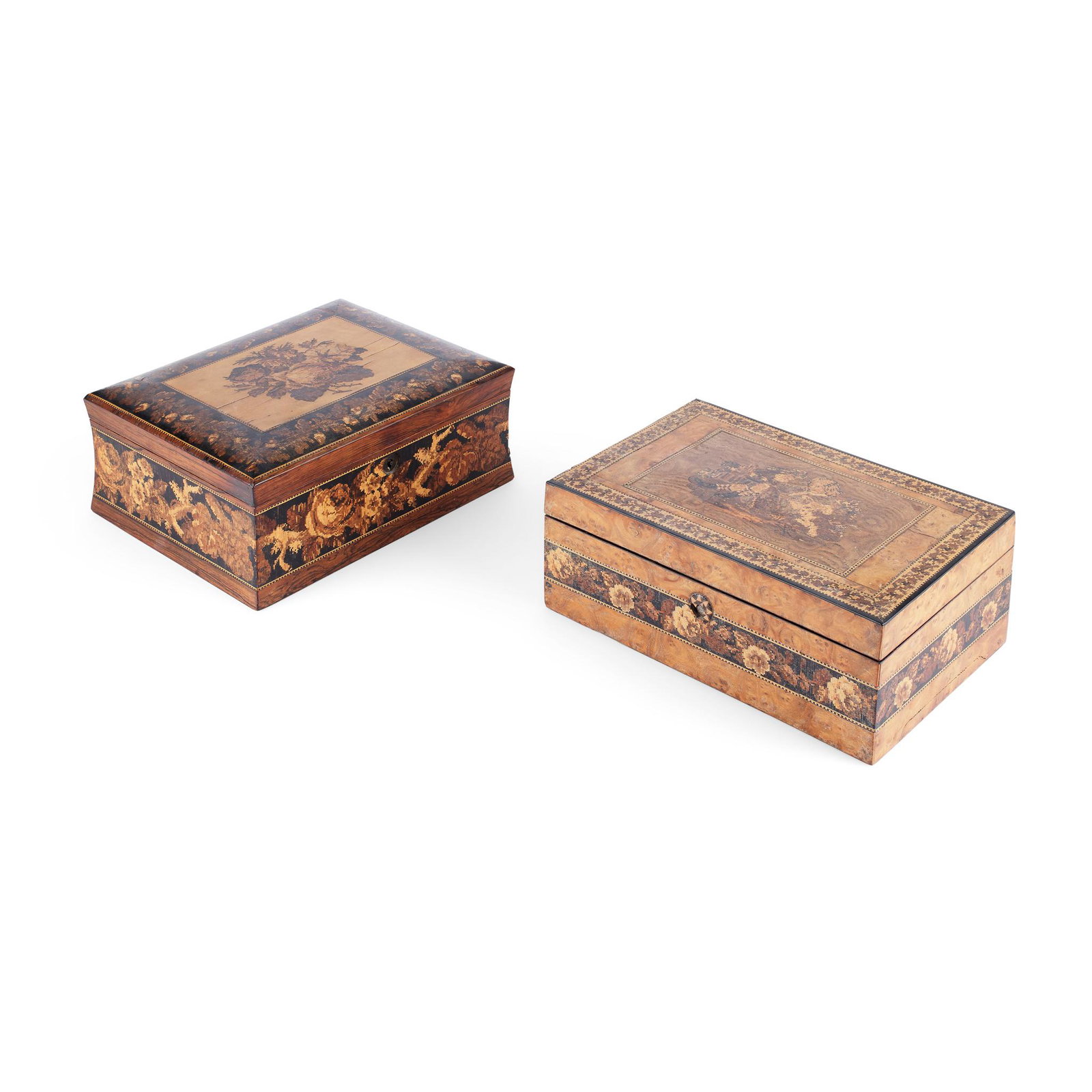 Y TWO TUNBRIDGE WARE BOXES 19TH CENTURY