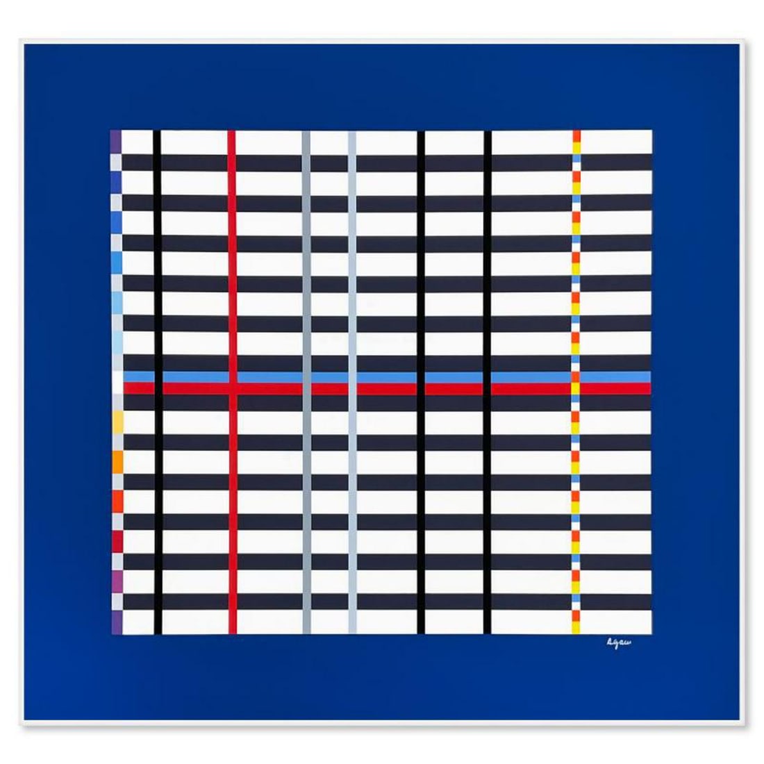 Yaacov Agam, "Hommage du Mondrian (Silver)" Limited Edition Serigraph, Numbered and Hand Signed withHommage du Mondrian (Silver) is a limited edition serigraph on paper by Yaacov Agam, hand signed by the artist. Includes Letter of Authenticity. Measures approx. 26.5" x 28" (image). Reference#: 50014