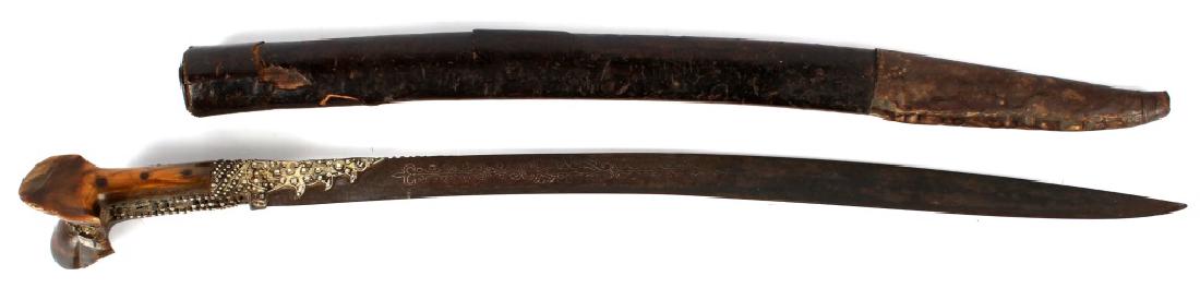 SoldYataghan SwordYataghon sword. - Metal handle. Damage/wear on handle as seen in photos. - Etched design on blade. - Approx. 30 1/2"L. Photos are considered part of the description and condition. 130-2ASee Sold Price