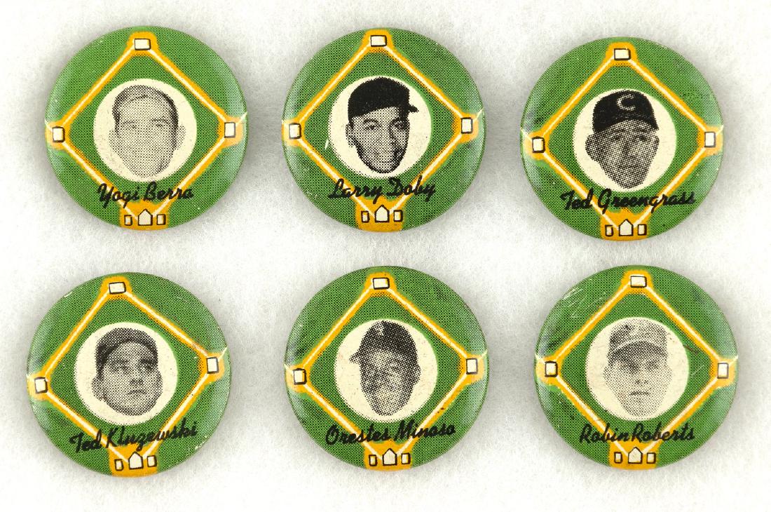 YELLOW BASEPATH 1956 BUTTONS: BERRA, DOBY, GREENGRASS,