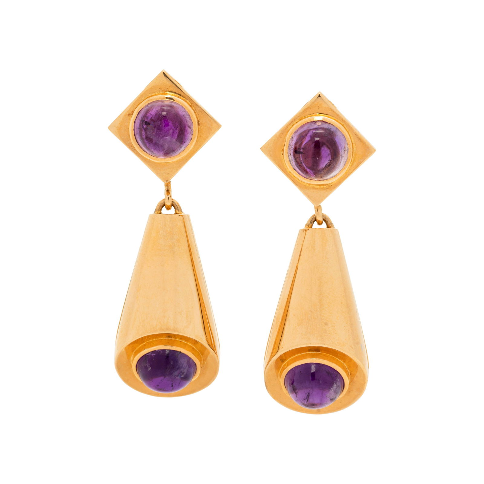 Sophisticated Retro-style Drop Earrings in 18kt Yellow Gold with Faceted Amethyst - Weight 8.70 grHIGH END GEMS & JEWELS LTD4.3(1)$5204 days Left