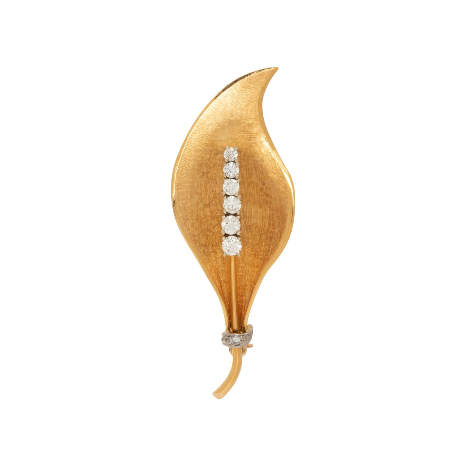 YELLOW GOLD AND DIAMOND LEAF BROOCH