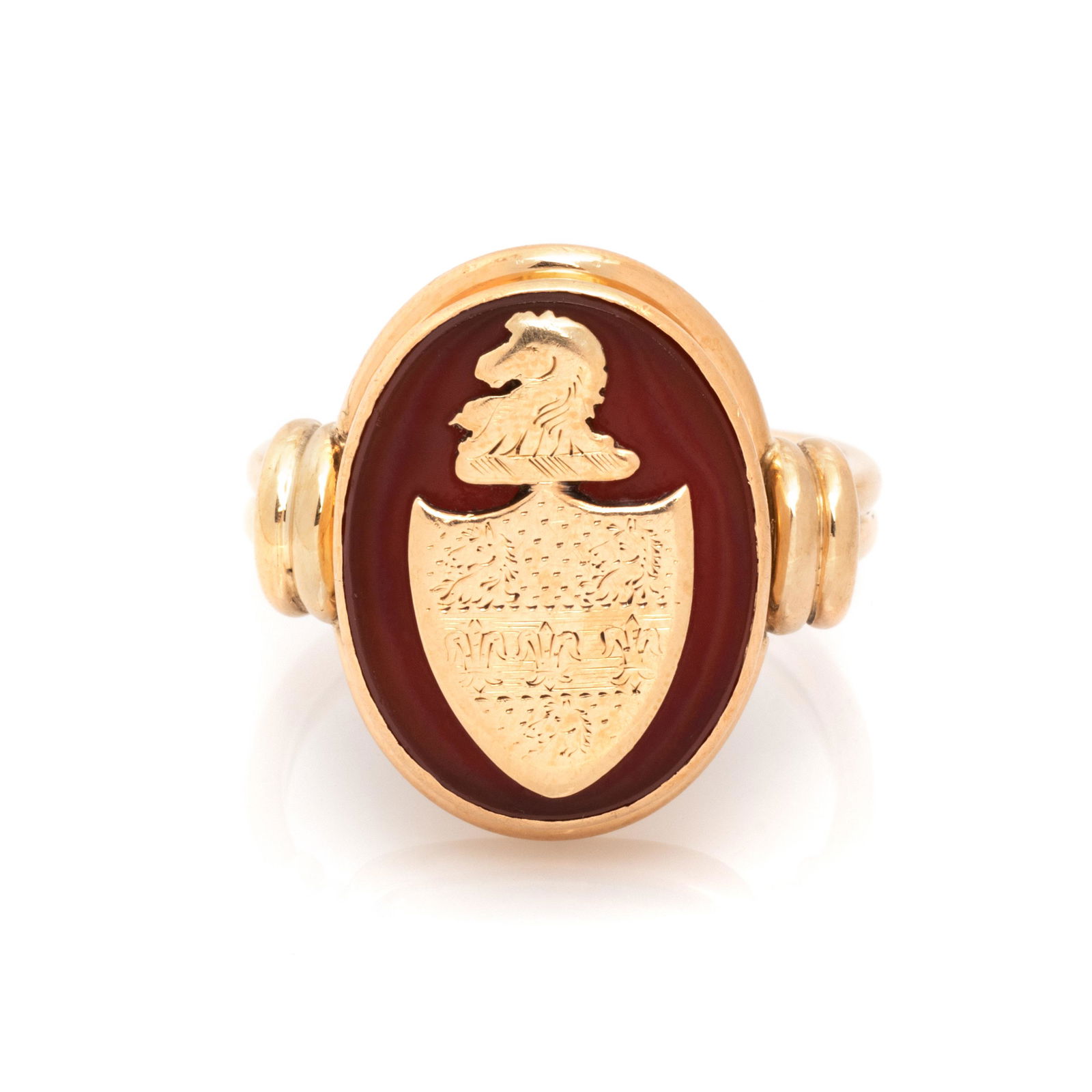 YELLOW GOLD AND HARDSTONE HERALDIC RING