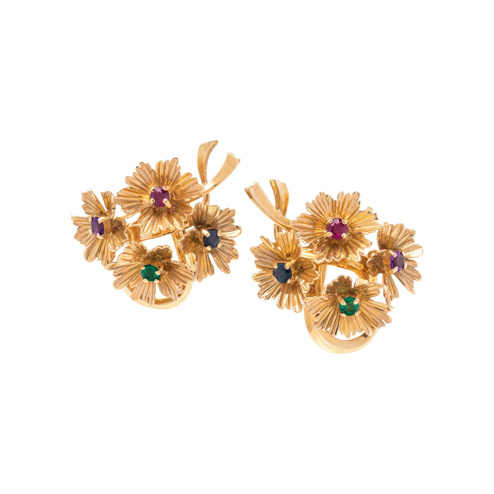 French 18K Yellow Gold Multicolor Tremblant Floral Clip-On Earrings by Serra ParisBidhaus4.2(839)$1004 days Left