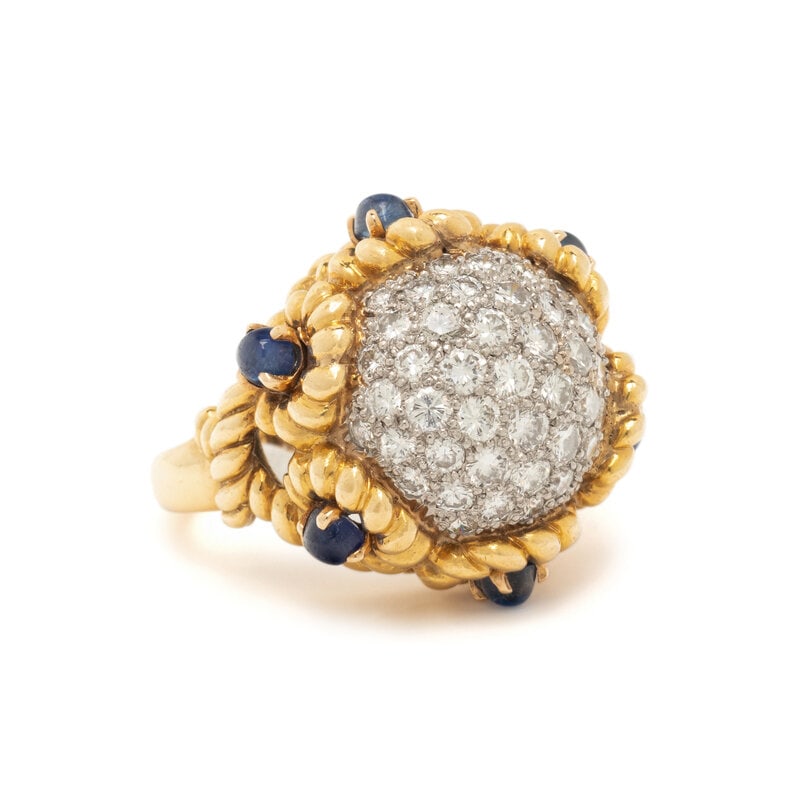 YELLOW GOLD, DIAMOND AND SAPPHIRE RING