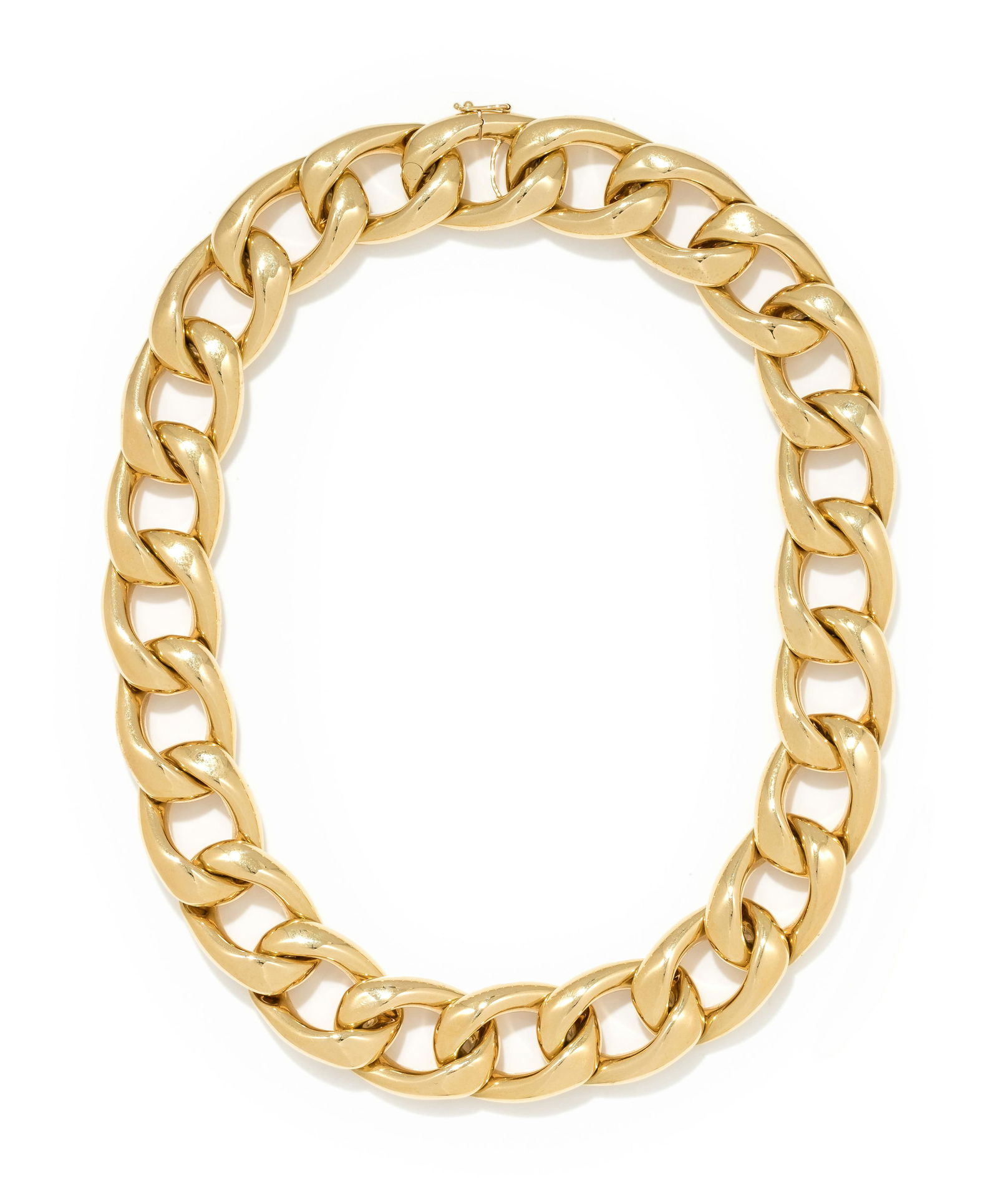 SoldDavid Webb, yellow gold necklaceDavid Webb, yellow gold necklaceDavid webb, 18kt yellow gold necklace with brilliant cut diamond for around 4 ct, 170 grSee Sold Price
