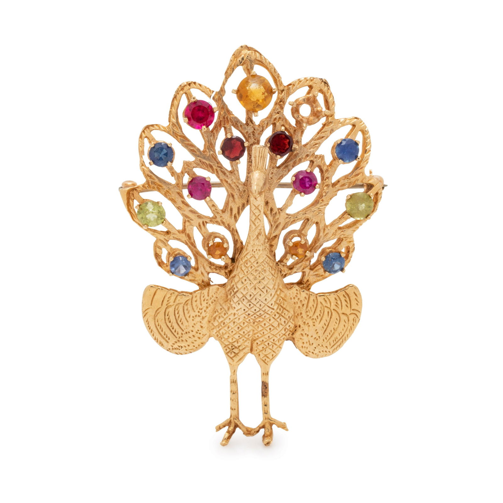 YELLOW GOLD PEACOCK BROOCH