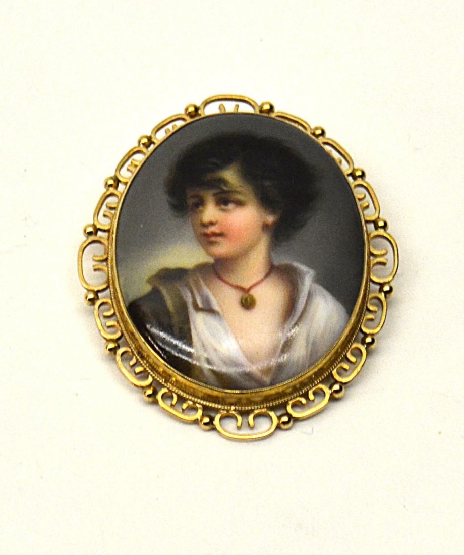 Vintage Estate 14K Gold Hand Painted Porcelain Brooch