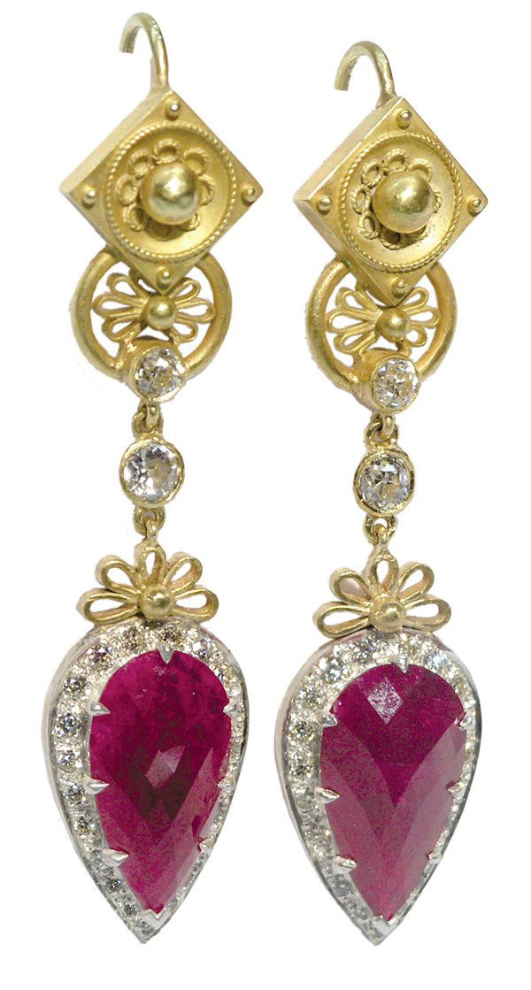 Yellow gold ruby diamond earrings
