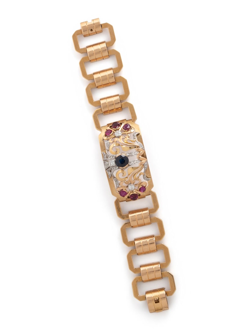 YELLOW GOLD, RUBY, SAPPHIRE AND DIAMOND BRACELET