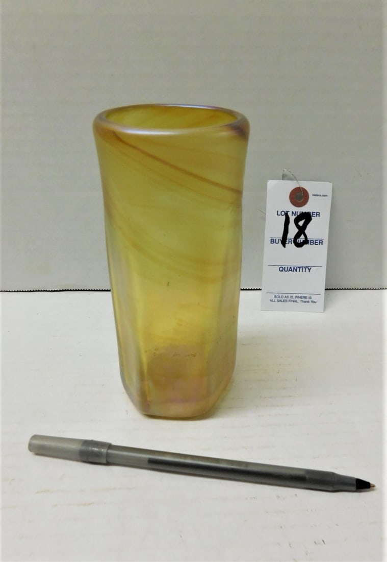 Yellow Swirl Vase Marked "LCT"