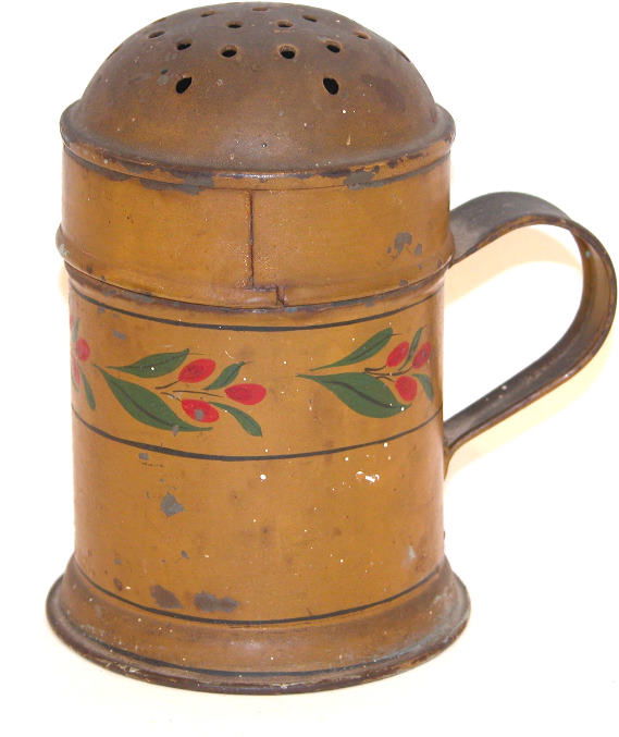 Yellow Toleware Flour Shaker.