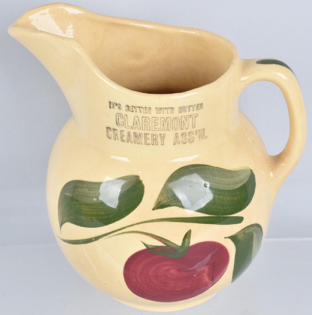 YELLOW WARE PITCHER w/ APPLE DECORATIONS & AD