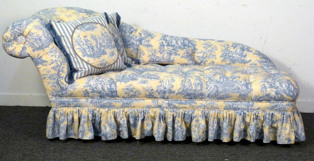 Yellow/Blue Toile Upholstered Chaise