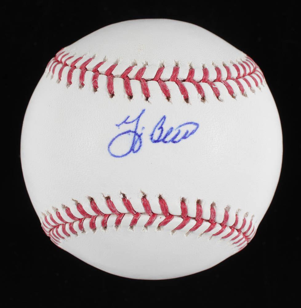 SoldYogi Berra Single Signed Baseball BAS COAYogi Berra single signed baseball. BAS COA #BA89057. NrMt/Mt-Mint. If lot is absent of a condition report one may be requested via email. Condition report is provided as an opinion only and is no guarSee Sold Price