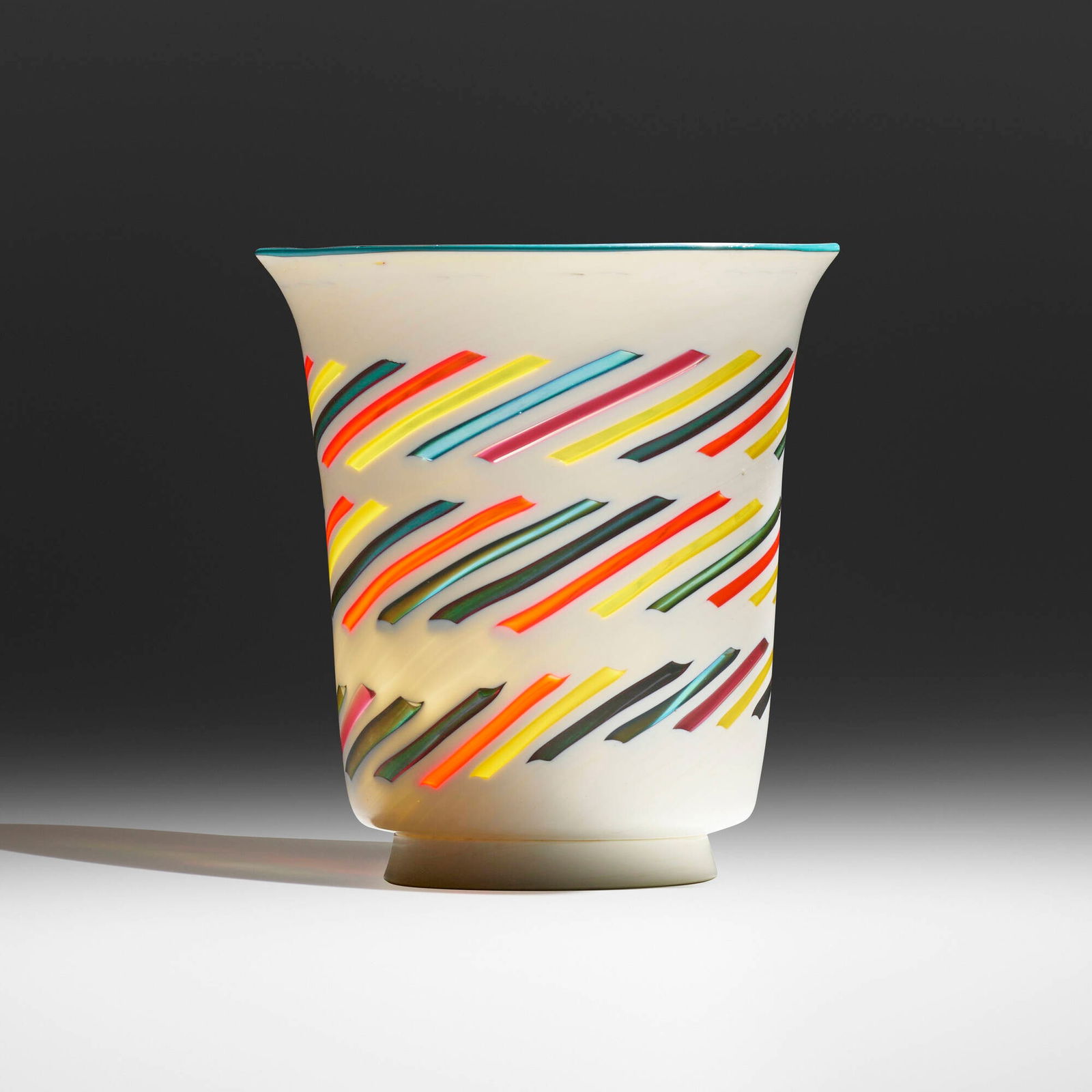 Vintage Art Glass Flower VaseFulvio Bianconi, Vase 'A canne ritorte', 1951Mar 25, 2026DINO MARTENS Nabucco 3121 vase from the Oriente series with a flared shape, flattened in the central7 days LeftVase Merletto, Brigitta Karlsson and Ove Thorssen for Venini 1972Dino Martens, Vase 'Oriente Leandro', 1952Mar 25, 2026ERCOLE BAROVIER Square-section vase from the Spira Aurata series, execution by Barovier & Toso,7 days LeftFulvio Bianconi, Vase 'A fasce di colore', 1953Mar 25, 2026VETRERIE ARTISTICHE CIRILLO MASCHIO Two-handled baluster vase, Murano.7 days LeftHANS HOLLEIN 8913 large vase with irregular rim, execution by Cleto Munari, Italy.7 days LeftYoichi Ohira, Vase 'Incalmo', 1990Mar 25, 2026ANZOLO FUGA (1912-1998) Large 'Bandiere' Vasecirca 1960for A.V.E.M, hand-blown glass with banded...7 days LeftMARY ANN TOOTS ZYNSKY Vase from the Folto series, executed by Venini, Murano.7 days LeftErcole Barovier, Intarsio vase23 hrs LeftGio Ponti, Vase 'A fasce verticale', 1950sMar 25, 2026VITTORIO FERRO. Glass vase with broken glass15 hrs LeftGino Cenedese, Vase 'Variegato', 1950Mar 25, 2026