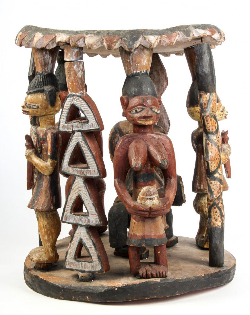 Yoruba Carved Polychrome Throne Stool