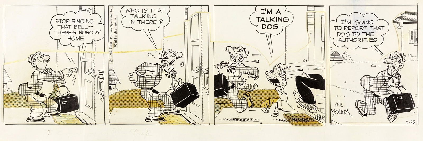 A Pair of Golden Age Comic Books Adventure Comics No. 119 and All-Flash No. 252 days LeftWarner Bros, Looney Tunes, Daffy Duck & Porky Pig, "Deduce, You Say!"1 day LeftWarner Bros, Looney Tunes, Bugs Bunny, Daffy Duck & Elmer Fudd, "Duck Season"1 day LeftWarner Bros, Looney Tunes, Pepe Le Pew, "The Cats Bah" Colored1 day LeftDAGWOOD COMICS #124 Harvey Comics 1962 Blondie CHIC YOUNG'S G-VG3 days LeftJoe Orlando, Valor #4 Story Page 2 Original Art (EC Comics, 1955)5 days LeftDotty Dripple Comics #10 vol. 1 1950 Li'l Taffy Buford Tune art G-VG3 days LeftBoris O'Klein (1893-1985), "Ilya L'Etourdie" (Ilya the scatterbrain), from the "Dirty Dogs of Paris"Mar 10, 2026Andy WARHOL (1928-1987), Attribué à. Mickey Mouse.3 hrs LeftDopin' Dan No. 1 Last Gasp Underground Comic by Ted Richards 19722 days LeftWillem Grimm* (Darmstadt-Eberstadt 1904 - Hamburg 1986)Mar 25, 2026Jacob Pins (German - Israeli, 1917-2005)Mar 07, 2026Snarf No. 3 Underground Comic Kitchen Sink Enterprises 19722 days Left1966 G/G-661209 MC-5 Jagged Edge Grande Ballroom Detroit Handbill Near Mint 89Isabella K. Cancino (b. 1995) Untitled, 2020 Pen4 days LeftBaldur Helgason (b. 1984) Picaresque, 2022 Etchi4 days Left