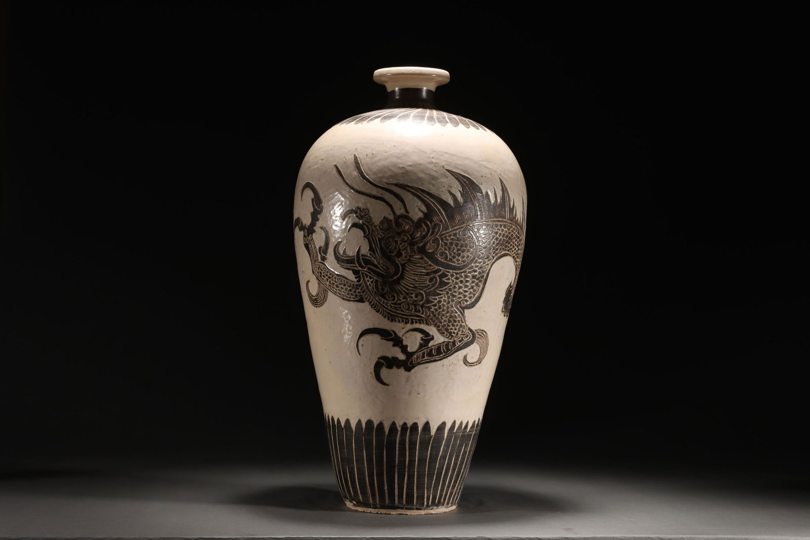YUAN DYNASTY CIZHOU WARE DRAGON PATTERN PLUM VASE