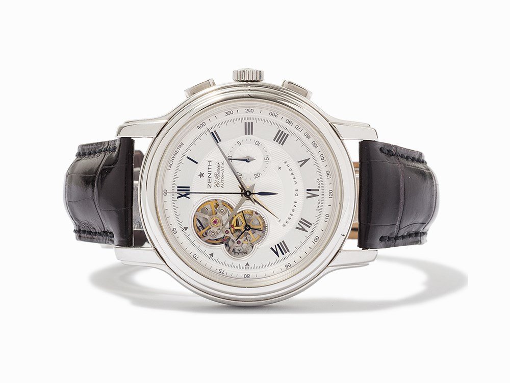 Zenith El Primero Chronomaster 40mm Stainless Steel Watch 03.0240.4039 with Box and Papers6 days LeftZenith El Primero 18K White Gold Watch 65.0520.4002 with Box and PapersFeb 14, 2026Zenith El Primero Chronograph Automatic Two Tone Watch 51.2041.400Feb 18, 2026Zenith El Primero Chronomaster 41mm Sport Black Dial Automatic Watch 03.3100.3600/21.M3100Feb 16, 2026Zenith El Primero Tourbillon Chronograph Ref 18.2280.4035 Brown Leather With Card5 hrs LeftZENITH EL PRIMERO LIGHTWEIGHT LIMITED EDITION WATCH7 days LeftZenith Defy Classic 03.0526.4021 Men's Automatic Diver Watch3 days LeftZenith El Primero Doublematic 18K Rose Gold Wristwatch 44mm with Box and PapersFeb 16, 2026Zenith Elite 03.2270.6150 Stainless Steel Automatic WatchFeb 16, 2026[NO RESERVE] ALFRED ROCHAT & FILS. A STAINLESS STEEL AUTOMATIC CHRONOGRAPH WRISTWATCH WITH MOON ...NEW IWC PORTOFINO CHRONOGRAPH STAINLESS STEEL 42 MM SILVER WATCH IW3910272 days LeftLongines Master Collection Chrono Moonphase Automatic Watch L2.773.4Feb 18, 2026NEW IWC PORTOFINO CHRONOGRAPH STAINLESS STEEL 42 MM SILVER WATCH IW391027Mar 08, 2026[NO RESERVE] PAUL PICOT. A STAINLESS STEEL AUTOMATIC SPLIT SECONDS CHRONOGRAPH CALENDAR WRISTWAT...Gevril K0111 Chronograph Stainless Steel Automatic Watch 39mmFeb 20, 2026Vintage Zenith Manual Wind Wristwatch, Stainless SteelMar 15, 2026