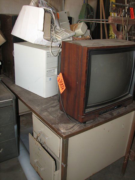 ZENITH TV, DESK WITH TWO DRAWERS, INTEL COMPUTER