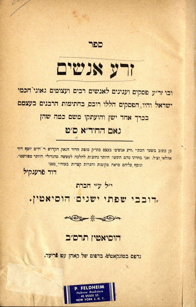 Zera Anashim. Husiyatan, 1902.