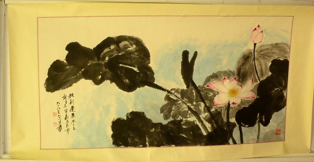 ZHANGDAQIAN MARK, AN INK LOTUS SCROLL