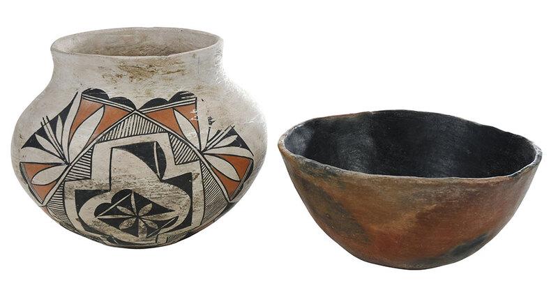 Zia Polychrome Olla and Redware Bowl