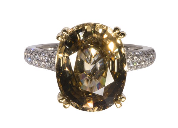 SoldZircon, diamond and 14k two-tone ringZircon, diamond and 14k two-tone ring centering (1) oval-cut blue zircon, weighing approximately 3.36 ct., surrounded by (22) full cut diamonds, weighing a total of approximately 0.24 ct., set in a 14See Sold Price