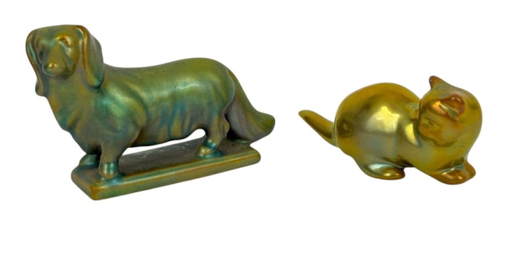 Zsolnay Hungarian Eosin Glazed Figurines 2pc LOT