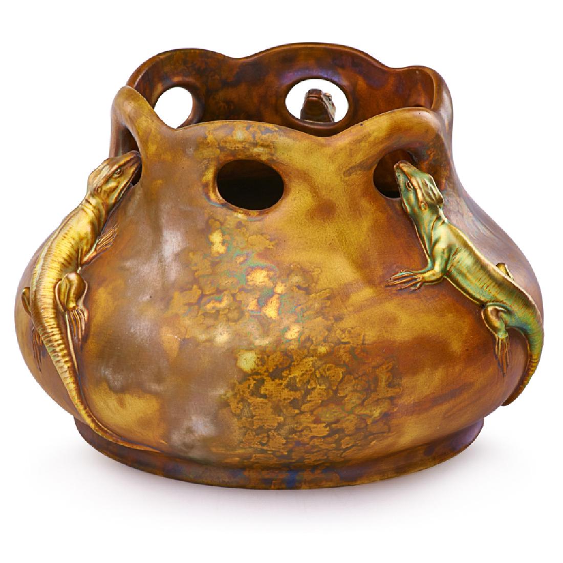 ZSOLNAY Large vessel with lizards