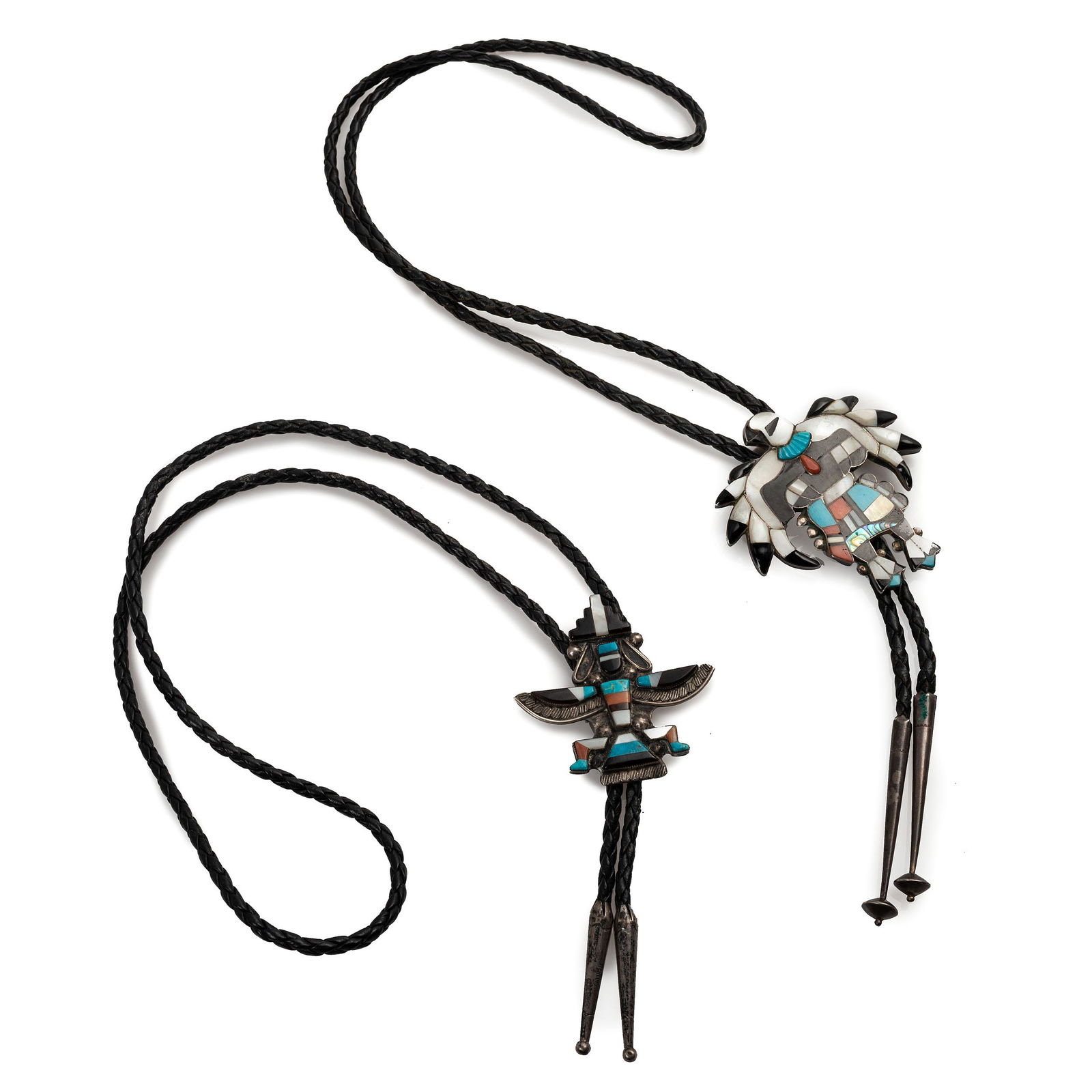 Zuni Mosaic Inlay Eagle Dancer and Knifewing Bolo Ties