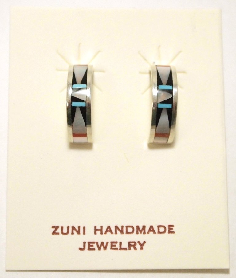 Zuni Multi-Stone Inlay Sterling Silver Half-Ring Post
