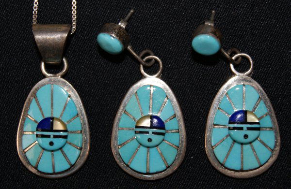 Native America Zuni Sterling Silver Turquoise Inlay Necklace & Earring's Set By Lucy Sheyka.Pacific Auction House4.5(702)$2019 hrs Left