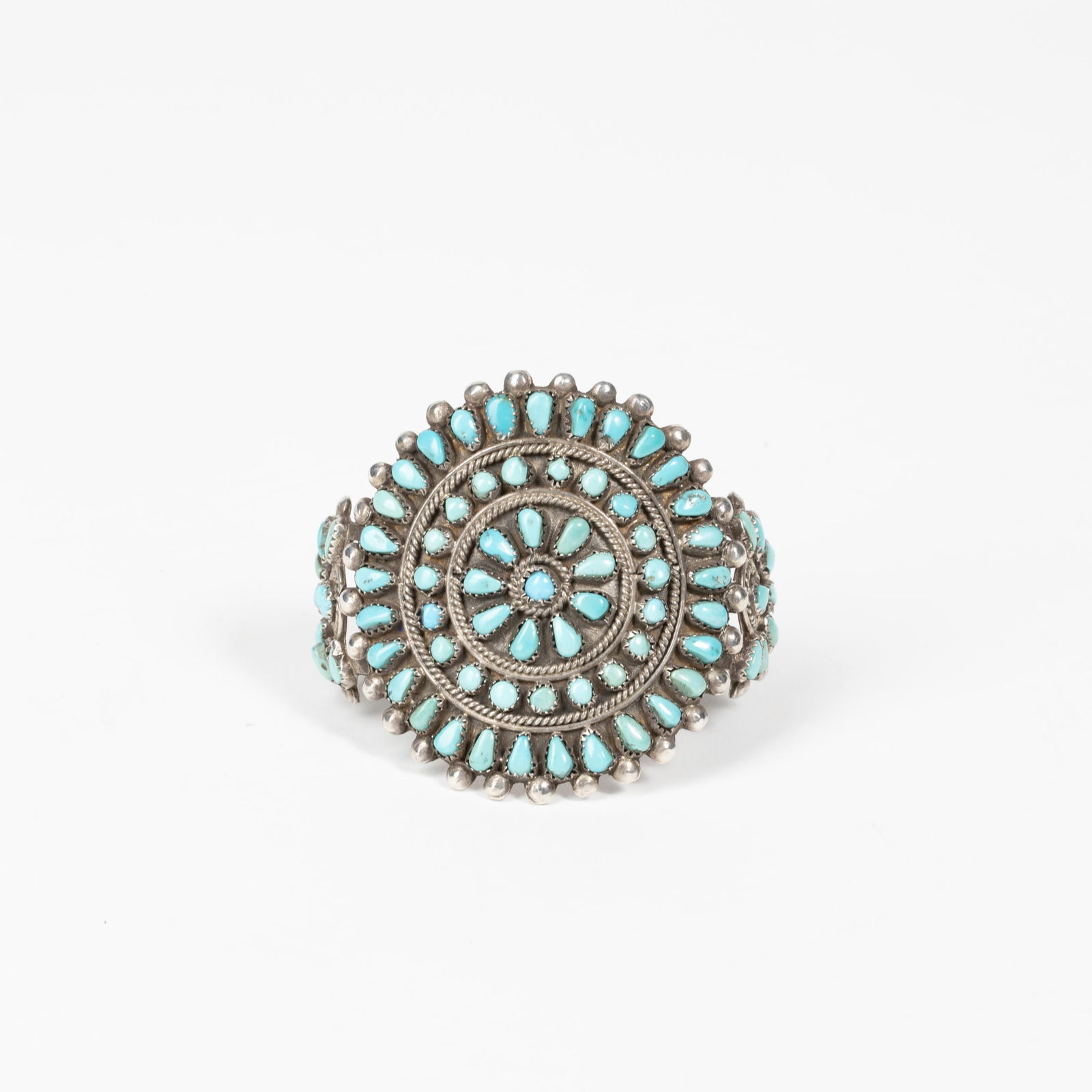 Zuni, Turquoise Cluster Cuff Bracelet, ca. 1965