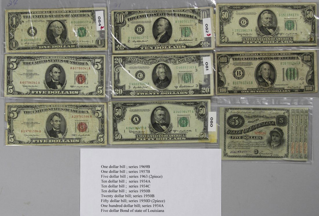 Browse a record of outcomes from past auctions, including sale prices and unsold items.Twelve US Dollar BillsAndrew Bush (b. 1956, American) 1 Dollar Bill, 199Uncut Sheet of 32 One Dollar BillsCANADA NOTES - BANK OF CANADA DOLLAR BILL LOT OF 3UNCUT SHEET OF 2006 SIGNED 5 DOLLAR BILLSA lot of 12 framed US dollar bills as follows: Thr10 Disney Items, Disney Dollars, Disneyland ticketAndrew Eccles (20th c.) Portrait of Bill ArnettBuffalo Bill by James BamaWOOLF, Bill (American, b. 1927). “#3 Battle of Missionary R...(19) Canadian Bills & Coins & British CoinsBill Worrell, Caped Ram Shaman with Breast Plate and Shield of Power29 Confederate Bank Notes and One Bill of SaleA 1903 First National Bank of Portsmouth 20 Dollar National CurrencyAssorted Collection of Coins and BillsUNCUT & MISS CUT US CURRENCY FACE VALUE 94 DOLLARS2 UNC COMMEMERATIVE DOLLARS & 1993 TWO COIN SET:Collection of Civil War Confederate Paper Money(9) Canada, Algiers, Brazil, Zambia Bills & China, G.B24PC International Currency CollectionMixed Grouping Confederate Richmond CurrencyConfederate and Early US Currency Collection $20 NoteEarly United States Paper Currency$48.00 FACE VALUE SILVER CERTIFICATE PAPER CURRENCY,