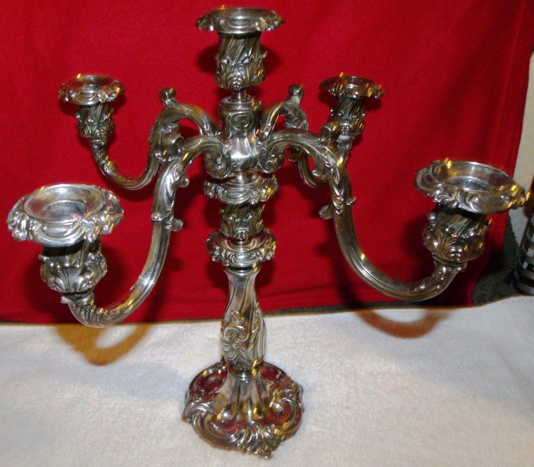 ![Pair of Rococo-Style Silver Plated Candelabra: Pair of Rococo-style silver plated candelabra, overall with floral and scrolling details, removable arm branch and finial; marks to bases. [19" H x 16 3/4" W x 6" D].](https://p1.liveauctioneers.com/1221/278474/146485387_1_x.jpg?height=280&quality=70&sharpen=true&version=1676040110&width=280)