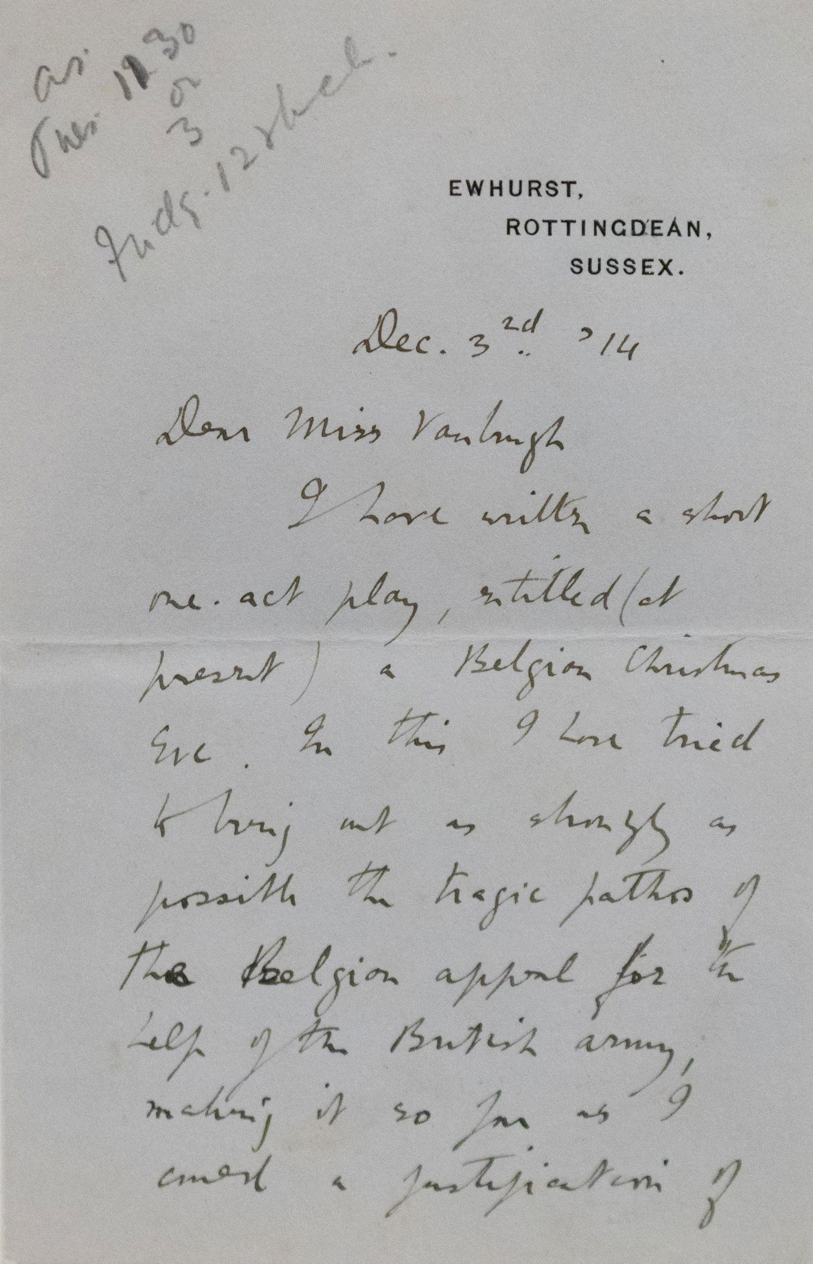 ![NOYES, Alfred (1880-1956), poet and playwright.: NOYES, Alfred (1880-1956), poet and playwright. Autograph letter signed ("Alfred Noyes"), to Miss [Irene] Vanbrugh. Ewhurst, Rottingdean, Sussex, 3 December 1914. 3 pages, 8vo, bifolium, on blue sta](https://p1.liveauctioneers.com/197/155570/78516632_1_x.jpg?height=280&quality=70&sharpen=true&version=1574280368&width=280)